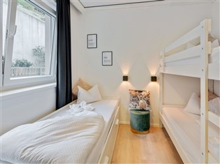 Das 1. Schlafzimmer hat einen geräumigen Kleiderschrank, ein Einzelbett (kann in ein Doppelbett umgestellt werden) und ein Etagenbett. Das 2. Schlafzimmer hat ein Doppelbett und einen geräumigen Kleiderschrank. Skiaufbewahrung, Waschmaschine, Trockner und Aufzug machen das Leben leicht. Sie können den Fernseher im Haus sehen.