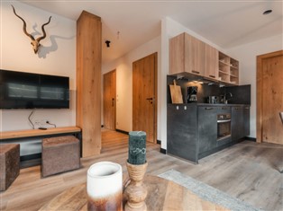 "Typ A", 3-Zimmer-Wohnung 56 m². Hell, komfortabel und geschmackvoll eingerichtet: 2 Doppelzimmer. Wohn-/Schlafzimmer mit Sat-TV und Flachbildschirm. Offene Küche (Geschirrspüler, 4 Glaskeramikherd Platten, Toaster, Wasserkocher, Tiefkühler, elektrische Kaffeemaschine) mit Esstisch. Dusche/WC, sep. WC. Terrasse. Terrassenmöbel. Schöne Sicht auf die Skipiste und die Landschaft. Zur Verfügung: Internet (Wireless LAN, gratis). Bitte beachten: Nichtraucher-Unterkunft. 1 Haustier/Hund erlaubt.