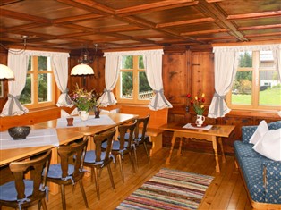 "Fitsch (GOP320)", 5-Zimmer-Haus 190 m² auf 2 Stockwerken. Rustikal und gemütlich eingerichtet: grosses Wohn-/Esszimmer mit Sat-TV und Kachelofen. 1 Zimmer mit 1 Bett, 1 Doppelbett und Waschbecken. Küche (Backofen, Geschirrspüler, 4 Glaskeramikherd Platten, Toaster, elektrische Kaffeemaschine) mit Holzofen. 3 Duschen, sep. WC, Doppelwaschbecken. Obergeschoss: 1 Zimmer mit 2 Betten. 1 Zimmer mit 3 Betten, 1 Doppelbett und Waschbecken. 1 Zimmer mit 2 Betten und 1 x 2 Etagenbetten, 1 Doppelbett und Waschbecken. 2 Duschen, sep. WC, Doppelwaschbecken. E-Heizung, Holzheizung, Fussbodenheizung. Holzböden. Das Wohnzimmer ist eine Bauernstube. Gartensitzplatz. Liegestühle (6). Bitte beachten: Nichtraucher-Haus. Rauchmelder.