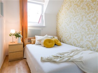 Ferienwohnung (In einem Wohngebiet oder im Zentrum (Stadt)) , 60 m² Wohnfläche, 2 Schlafzimmer, 1 Badezimmer, für 6 Personen. In der 5. Etage: (Wohnzimmer (Doppelschlafcouch, TV (Satellit), DVD-Spieler, Radio, CD-Spieler, Stereoanlage), Küche (Backofen, Mikrowelle, Kühl-/Gefrierkombination), Schlafzimmer (Doppelbett), Schlafzimmer (Doppelbett), Badezimmer (Badewanne mit Dusche, Waschbecken, Waschmaschine, Heizung), Heizung, Gartenmöbel)