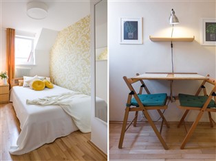Die Ferienwohnung befindet sich in einem der schönsten Viertel von Krakau. Sie liegt in einem ruhigen kleinen Straße in Kazimierz, dem ehemaligen jüdischen Bezirk von Krakau. Dieser Stadtteil ist wie kleine Stadt in einer großen Stadt. Kazimierz verdankt seine einzigartige Atmosphäre der historischen Umgebung und hat viele interessante Sehenswürdigkeiten: Galerien, Antiquitätenläden, kleine Restaurants, originelle Bars und Pubs stehen für die Besucher bereit. Die komfortable, neu eingerichtete und gut ausgestattete Zwei-Zimmer-Wohnung verfügt über jeglichen Komfort, den man braucht, um den Urlaub zu genießen. Sie befindet sich in der obersten Etage eines frisch renovierten Gebäudes, von dessen geräumigen Terrasse Sie einen einem atemberaubenden Blick über die ganze Stadt genießen können. Das nach Süd-West ausgerichtete Wohnzimmer bietet Ihnen nicht nur praktische Dinge wie TV, DVD-Player und einen Computer mit Breitband-Internetzugang, es ist auch äußerst ansprechend eingerichtet. Zudem führt es direkt auf die wunderbare, grüne Terrasse, die 20 qm groß ist. Von hier blicken Sie auf die Weichsel, die barocke St.-Stanislav-Kirche, die sich auf einem Felsen befindet, sowie auf das Wawel-Schloss. An einem guten Tag sehen Sie sogar das Tatra-Gebirge. Die Terrasse ist mit bequemen Gartenmöbeln ausgestattet. Hier können Sie romantische Sonnenuntergänge genießen.