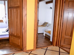 4-Zimmer-Haus 90 m². Offenes Wohnzimmer 25 m² mit 2 Doppeldiwanbetten (120 cm, Länge 200 cm), offenem Kamin, DVD und Klimaanlage. Ausgang zum Garten, zur Terrasse. 1 kleines Zimmer 9 m² mit 1 franz. Bett (140 cm, Länge 200 cm), TV. 1 Zimmer 14 m² mit 2 Betten (90 cm, Länge 200 cm), 1 Doppeldiwanbett (120 cm, Länge 200 cm), TV. 1 Zimmer 12 m² mit 1 Diwanbett (90 cm, Länge 200 cm), 1 franz. Bett (140 cm, Länge 200 cm), TV. Offene Küche (Geschirrspüler, 4 Glaskeramikherd Platten, Mikrowelle, Tiefkühler). 2 Duschen/WC. E-Heizung, Holzheizung, Solarheizung. Terrasse 10 m², überdacht. Terrassenmöbel, Abstellkammer. Zur Verfügung: Kinderhochstuhl, Babybett bis 3 Jahre, Holz (gratis). Parkplatz beim Haus.