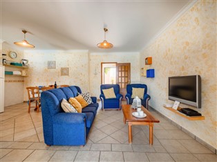 "Isaurinda (EOI125)", 3-Zimmer-Doppelhaushälfte 80 m². Schön und gemütlich eingerichtet: 1 Zimmer mit 2 Betten (98 cm, Länge 185 cm), E-Heizofen. Ausgang zum Garten. 1 Zimmer mit 1 franz. Bett (150 cm, Länge 200 cm), Dusche/WC. Ausgang zur Terrasse. Wohnküche (Backofen, Geschirrspüler, 4 Glaskeramikherd Platten, Toaster, Wasserkocher, Mikrowelle, Tiefkühler, elektrische Kaffeemaschine) mit Esstisch, Sat-TV, Stereoanlage, DVD und E-Heizofen. Ausgang zur Terrasse. Bad/WC. Heizung nicht in allen Räumen. 2 Terrassen überdacht. Terrassenmöbel, Gartengrill, Liegestühle (4), Abstellkammer. Zur Verfügung: Waschmaschine, Safe, Kinderhochstuhl, Babybett, Haartrockner. Internet (Wireless LAN, gratis). Bitte beachten: Nichtraucher-Unterkunft. Rauchmelder, Feuerlöscher.