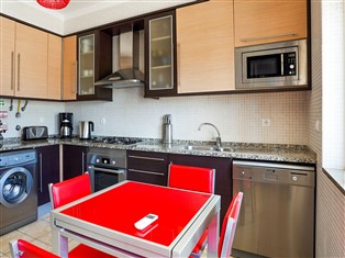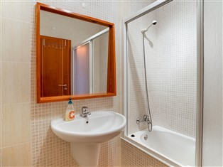 Ferienwohnung (In einem Wohngebiet oder im Zentrum (Stadt)) , 90 m² Wohnfläche, 2 Schlafzimmer, 1 Badezimmer, für 5 Personen. Parterre: (Wohnzimmer (Schlafcouch 1 Pers., TV, DVD-Spieler, CD-Spieler), Wohnküche (Kochherd, Kaffeemaschine, Backofen, Mikrowelle, Spülmaschine, Kühl-/Gefrierkombination), Schlafzimmer (Doppelbett), Schlafzimmer (2x Einzelbett, TV, DVD-Spieler), Badezimmer (Badewanne mit Dusche, Toilette), Waschmaschine, Klimaanlage, Terrasse)