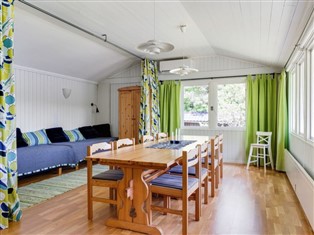 "Munkhalla Utsikten", 3-Zimmer-Haus 75 m² auf 2 Stockwerken. Objekt geeignet für 4 Erwachsene + 2 Kinder. Hell, renoviert im Jahre 2013, schön und modern eingerichtet: Wohn-/Schlafzimmer mit 2 Betten, Schwedenofen, Esstisch, Sat-TV und CD. Ausgang zur Terrasse. 1 Zimmer mit 1 Doppelbett. Küche (Backofen, 4 Glaskeramikherd Platten, Toaster, Wasserkocher, Mikrowelle, Tiefkühler, elektrische Kaffeemaschine). Ausgang zur Terrasse. Dusche/WC. Heizung. Obergeschoss: (Leiter) 1 abgeschrägtes, offenes Zimmer, Deckenhöhe 40 - 140 cm mit 2 Betten. Holzdielenboden. Terrasse. Terrassenmöbel, Gartengrill (mobil). Sicht auf den See. Zur Verfügung: Waschmaschine, Bügeleisen, Kinderhochstuhl, Babybett. Internet (Wireless LAN, gratis). Bitte beachten: Nichtraucher-Haus. Gefrierschrank ca. 60 l. Der Außenkamin steht nicht zur Verfügung. Anstelle eines abgeschlossenen Schlafzimmers befinden sich manche Schlafplätze in einem offenen Bereich (Galerie, Nische etc.).