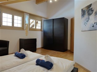 "Staubbach", 4-Zimmer-Maisonette-Wohnung 111 m² auf 2 Stockwerken, im Dachgeschoss. Geräumig und hell, komfortabel und gemütlich eingerichtet: offenes Wohn-/Esszimmer 30 m² mit Kabel-TV, Flachbildschirm, Radio und CD. Ausgang zum Balkon. 1 Zimmer mit 1 Doppelbett (2 x 80 cm, Länge 200 cm). 1 Zimmer mit 2 Betten (90 cm, Länge 200 cm). Offene Küche (Backofen, Geschirrspüler, 4 Glaskeramikherd Platten, Mikrowelle, elektrische Kaffeemaschine, Fondue Set (Käse)). Bad/WC. Obergeschoss: Galerie mit 1 Doppelbett (160 cm, Länge 200 cm), Dusche/WC. Balkon, Westlage. Balkonmöbel. Herrliche Sicht auf die Berge und die Landschaft. Zur Verfügung: Waschmaschine, Wäschetrockner, Bügeleisen, Haartrockner. Internet (Wireless LAN, gratis). Parkplatz (1 Auto) beim Haus. Bitte beachten: geeignet für Familien. Nichtraucher-Unterkunft. Anstelle eines abgeschlossenen Schlafzimmers befinden sich manche Schlafplätze in einem offenen Bereich (Galerie, Nische etc.).