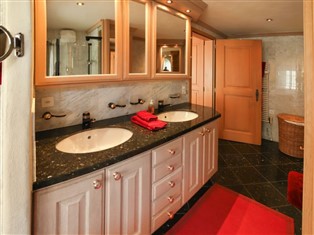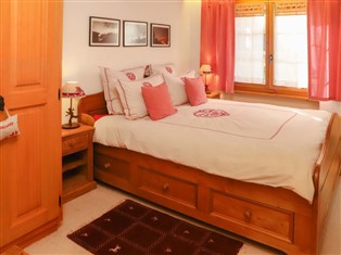 "Marie-Soleil Sud", 5-Zimmer-Wohnung 145 m², im Erdgeschoss. Geräumig, sehr komfortabel und geschmackvoll eingerichtet: offenes grosses Wohn-/Esszimmer 50 m² mit offenem Kamin, Esstisch, Digital-TV, Flachbildschirm und elektrischem Rollladen. Ausgang zur Terrasse. 1 Zimmer mit 1 Doppelbett (2 x 90 cm, Länge 200 cm), Bad/Dusche/WC und Doppelwaschbecken. Ausgang zur Terrasse. 2 Doppelzimmer, jedes Zimmer mit 2 Betten (90 cm, Länge 200 cm). 1 Zimmer mit 1 Doppelbett (160 cm, Länge 200 cm). Offene Küche (Backofen, Geschirrspüler, 4 Glaskeramikherd Platten, Toaster, Wasserkocher, Mikrowelle, elektrische Kaffeemaschine, Kapseln für die Kaffeemaschine (Nespresso) extra, Racletteofen, Fondue Set (Käse)) mit Bar. Bad/WC, Dusche/WC. Grosse Terrasse, Südlage und Westlage. Terrassenmöbel. Eingeschränkte Sicht auf die Berge. Zur Verfügung: Waschmaschine, Wäschetrockner. Internet (Wireless LAN, gratis). Parkplatz (überdacht, 2 Autos). Bitte beachten: Nichtraucher-Unterkunft.