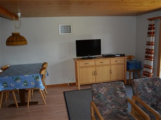 Wohnzimmer mit ausziehbarem Sofa, Satelliten-TV. Wohnküche u. a. ausgestattet mit Esstisch, Filterkaffeemaschine und Fondue-Set. 1 Doppelschlafzimmer (2x90x190cm). 1 Schlafzimmer mit 1 Etagenbett (2x90x190cm). 1 Badezimmer mit Bad/WC. Kinderbett (70x140cm) inkl. Bettwäsche vorhanden.