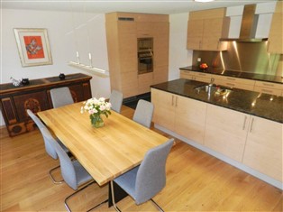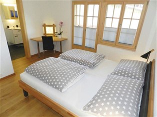 Helles Wohn-/Esszimmer mit grosser offener Küche (u.a. ausgestattet mit Keramikherd, Backofen, Steamer, Kühlschrank mit Gefrierfach, Geschirrspülmaschine, Kapsel-Kaffeemaschine (Nespresso DeLonghi) und Fondue-Set), Esstisch, Sofa und TV. 2 Schlafzimmer mit je 1 Doppelbett (2x100x200cm), eigenem Badezimmer mit Dusche/WC und Balkonzugang. Die ganze Wohnung verfügt über eine in allen Zimmern individuell regulierbare Bodenheizung. WiFi vorhanden.