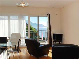 "Appt. 203", 2-Zimmer-Wohnung 90 m² im 2. Stock. Zweckmässig und gemütlich eingerichtet: Wohn-/Schlafzimmer mit 1 Ausziehbett (2 Pers.), Esstisch und TV (Flachbildschirm). Ausgang zum Balkon, Richtung Süden und Richtung Westen. 1 Zimmer mit 2 Betten und Bad/WC. Offene Küche (Backofen, Geschirrspüler, 4 Glaskeramikherd Platten, Wasserkocher, Mikrowelle, elektrische Kaffeemaschine, Kapseln für die Kaffeemaschine (Nespresso) extra). Sep. WC. Bodenheizung. Balkon. Balkonmöbel, Abstellkammer. Sehr schöne Sicht auf den See. Zur Verfügung: Bügeleisen, Haartrockner. Internet (Wireless LAN). Parkplatz Nr. 59 (extra). Bitte beachten: Nichtraucher-Unterkunft.