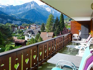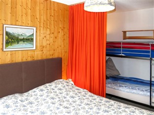 "Val Air", 2-Zimmer-Wohnung 50 m² im 1. Stock, Südlage. Objekt geeignet für 2 Erwachsene + 2 Kinder. Komfortabel und gemütlich eingerichtet: Wohn-/Esszimmer mit Kabel-TV, Radio, CD und DVD. Ausgang zum Balkon. 1 Zimmer mit 1 x 2 Etagenbetten (90 cm, Länge 200 cm), 1 Doppelbett (160 cm, Länge 200 cm). Offene Küche (Backofen, Geschirrspüler, 4 Glaskeramikherd Platten, Mikrowelle, Tiefkühler, elektrische Kaffeemaschine, Racletteofen, Fondue Set (Käse)). Dusche/WC. Grosser Balkon 20 m². Balkonmöbel, Liegestühle (2). Sehr schöne Sicht auf die Berge und die Ortschaft. Zur Verfügung: Waschmaschine (extra). Wäschetrockner. Internet (Wireless LAN, extra). Bitte beachten: geeignet für Familien. Nichtraucher-Unterkunft.