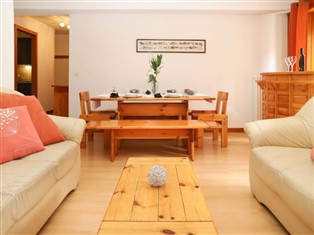 "Résidence 35", 3-Zimmer-Wohnung 100 m² im 3. Stock. Einfach und schön eingerichtet: grosses Wohn-/Esszimmer mit offenem Kamin und Kabel-TV. Ausgang zum Balkon. 1 Zimmer mit 3 Betten (90 cm, Länge 200 cm). 1 Zimmer mit 1 franz. Bett (160 cm, Länge 200 cm). Kochnische (4 Kochplatten, Geschirrspüler, Mikrowelle, Fondue Set (Chinoise, Käse)). Bad/WC, Dusche/WC. Kleiner Balkon. Balkonmöbel. Schöne Sicht auf den See und die Berge. Zur Verfügung: Haartrockner. Internet (Wireless LAN, gratis). Parkplatz Nr. 35 (überdacht). Bitte beachten: Nichtraucher-Unterkunft.