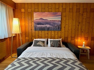 "Parc B428", 1-Zimmer-Wohnung 25 m² im 4. Stock. Renoviert im Jahre 2022, komfortabel und schön eingerichtet: grosses Wohn-/Esszimmer mit 1 Doppeldiwanbett (1 x 170 cm, Länge 200 cm), Kabel-TV. Ausgang zum Balkon, Richtung Süden. Kochnische (2 Kochplatten, Backofen, Mikrowelle, elektrische Kaffeemaschine, Kapseln für die Kaffeemaschine (Nespesso) extra, Racletteofen, Fondue Set (Käse)). Dusche/WC. Balkonmöbel. Panoramasicht auf den See und die Berge. Zur Verfügung: Internet (Wireless LAN).