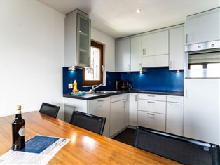 3 ½ Zimmer 3.OG: 1-5 Personen Küche, Kaffeemaschine (Nespresso), Geschirrspüler Schlafzimmer mit Doppelbett Schlafzimmer mit Doppelbett, sep. Dusche/WC Wohnzimmer mit Esstisch, 1 Schrankbetten Badezimmer mit Badewanne/WC Fussbodenheizung TV und freies Wifi Balkon (Süd und West) mit Tisch und Stühlen Waschküche im Keller