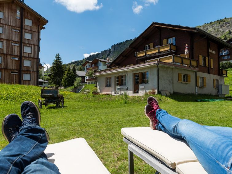 5½ Zimmer DG: 1-8 Personen Küche mit Esstisch, Kaffeemaschine (Nespresso), Geschirrspüler Schlafzimmer mit Doppelbett Schlafzimmer mit Doppelbett, sep. Dusche/WC Schlafzimmer mit 2 Einzelbetten Wohnzimmer mit Schlafsofa Badezimmer mit Badewanne/WC Fussbodenheizung TV und freies Wifi Balkon (Süd und Nord) mit Tisch und Stühlen Waschküche im Keller