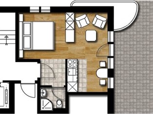 Moderne Studio-Ferienwohnung (26 m2 ) bestehend aus einem geräumigen Wohn-/Schlafzimmer mit Telefon (Direktwahl), Radio/CD-Player, schwenkbarem TV-Flachbildschirm, Video, Küche mit Glaskeramik-Kochfeld, Kühlschrank, Kaffeemaschine (Delizio-Kapseln oder Filter), Geschirrspüler, Mikrowelle, Käsefondue-Set, Esstisch, Dusche, WC, Terrasse mit Gartenmöbeln und angrenzender Liegewiese. Die ****-Wohnung mit einer modernen und zeitgemässen Infrastruktur ist geräumig und entspricht einem hohen Qualitätsstandard.