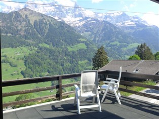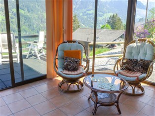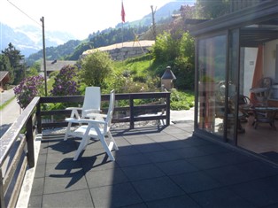 "Chalet La Soldanelle", 4-Zimmer-Chalet auf 2 Stockwerken. Objekt geeignet für 4 Erwachsene + 2 Kinder. Zweckmässig und gemütlich eingerichtet: Wohn-/Esszimmer mit Schiebetür Wintergarten mit offenem Kamin und TV. Ausgang zur Veranda. Offene Küche (Backofen, Geschirrspüler, 4 Glaskeramikherd Platten, Toaster, Wasserkocher, elektrische Kaffeemaschine, Kapseln für die Kaffeemaschine (Nespresso) extra, Racletteofen) mit Petrolofen. Bad, sep. WC. Ölheizung. Heizung nicht in allen Räumen. Obergeschoss: 1 Zimmer mit 1 Doppelbett (2 x 90 cm, Länge 200 cm). Ausgang zum Balkon. 1 Zimmer mit 2 Betten (90 cm, Länge 200 cm). Ausgang zum Balkon. 1 Kinderzimmer mit 1 x 2 Etagenbetten (90 cm, Länge 200 cm). Sep. WC. Teppichboden. Kleiner Balkon, Terrasse, Gartensitzplatz. Terrassenmöbel, Gartengrill. Herrliche Sicht auf die Berge, das Tal, die Landschaft und die Ortschaft. Zur Verfügung: Waschmaschine, Kinderhochstuhl. Internet (Wireless LAN, gratis). Garage, Höhe 190 cm.