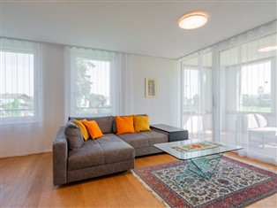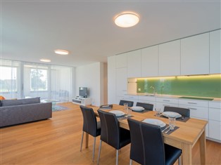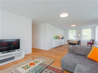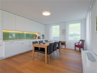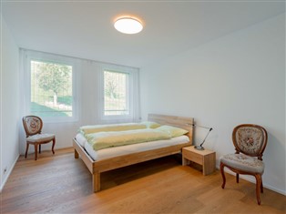 "Apartment 10", 3-Zimmer-Wohnung 108 m² im 1. Stock. Komfortabel und modern eingerichtet: Wohn-/Esszimmer mit 1 Doppeldiwanbett und Kabel-TV (Flachbildschirm). Ausgang zur Loggia. 2 Doppelzimmer. Offene Küche (Backofen, Geschirrspüler, 4 Glaskeramikherd Platten, Mikrowelle, Tiefkühler, elektrische Kaffeemaschine). Bad/WC. Fussbodenheizung. Grosser Balkon. Balkonmöbel, Loggia. Schöne Sicht auf die Landschaft. Zur Verfügung: Waschmaschine, Wäschetrockner. Internet (Wireless LAN, gratis). Garage beim Haus. Bitte beachten: Nichtraucher-Unterkunft.