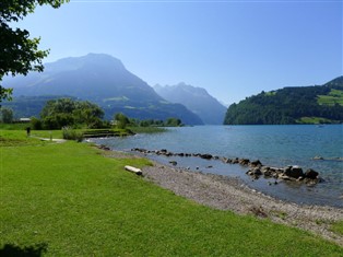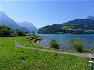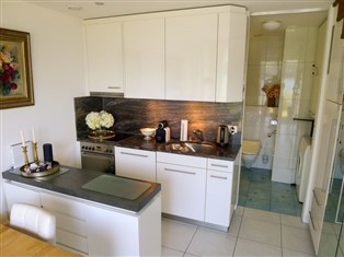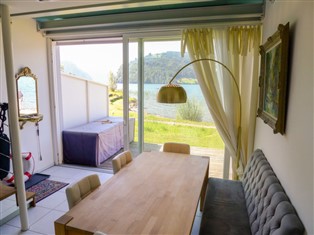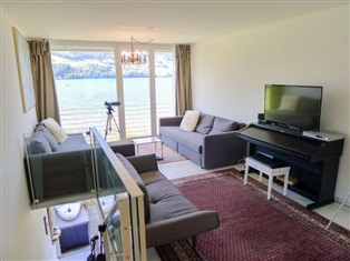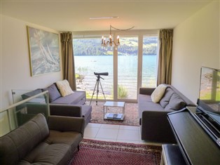 "waterfront stays", 2-Zimmer-Maisonette-Wohnung 60 m², im Erdgeschoss. Komfortabel und modern eingerichtet: Wohn-/Esszimmer. Ausgang zum Gartensitzplatz. Offene Küche (Backofen, Geschirrspüler, 4 Glaskeramikherd Platten, Toaster, elektrische Kaffeemaschine). Bad/WC. Obergeschoss: Wohn-/Schlafzimmer mit 1 Doppeldiwanbett und Kabel-TV (Flachbildschirm). Sep. WC. Gartensitzplatz. Terrassenmöbel. Schöne Sicht auf den See, die Berge und die Landschaft. Zur Verfügung: Internet (Wireless LAN, gratis). Parkplatz beim Haus. Bitte beachten: Nichtraucher-Unterkunft.