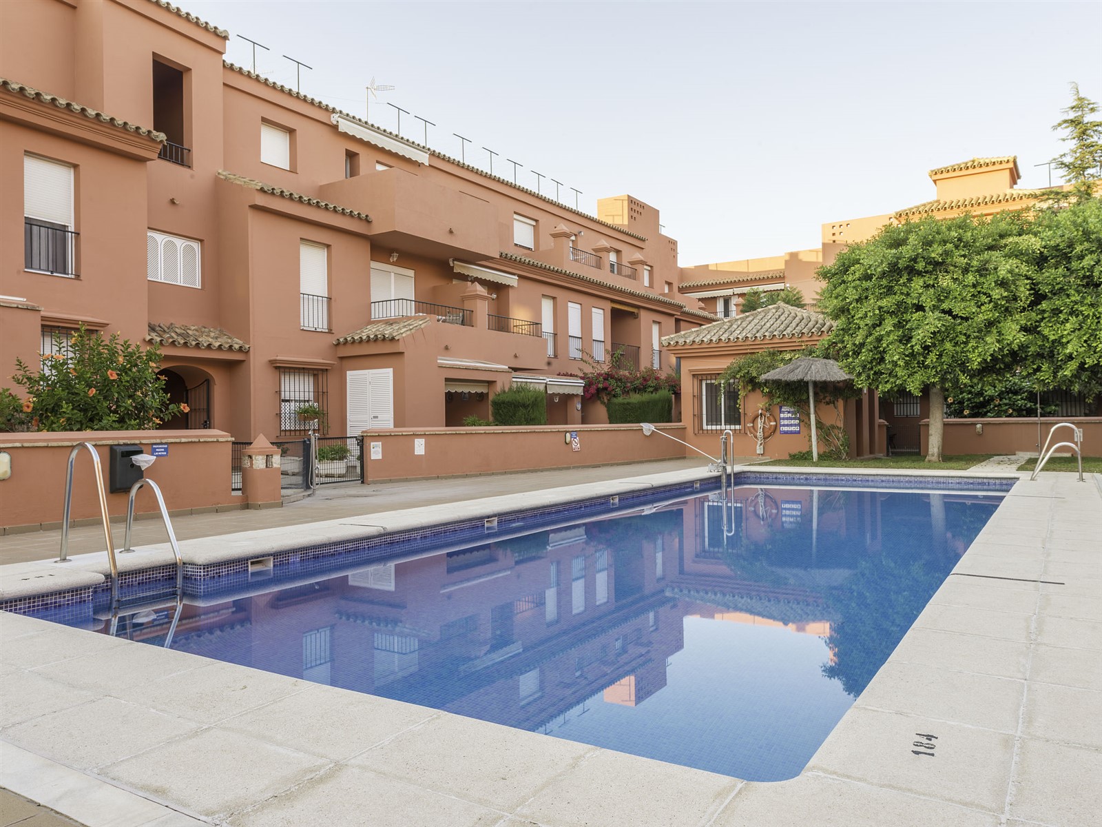 Appartementhaus "Vista Hermosa", Baujahr 2002. Ausserhalb des Ortes Rota. Zur Mitbenutzung: Grundstück (eingezäunt), Garten (eingezäunt) mit Rasen, Schwimmbad. Aussendusche. Im Hause: Fahrstuhl. Treppenweg (12 Stufen) bis zum Haus. Gemeinschaftsgarage. Einkaufsgeschäft 1 km, Lebensmittelgeschäft 200 m, Restaurant 100 m, Sandstrand 400 m, Freibad 20 m. Tennis 50 m, Reitstall 100 m.