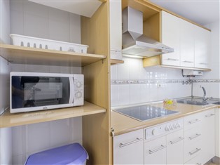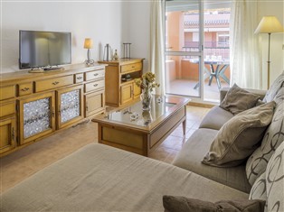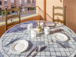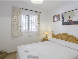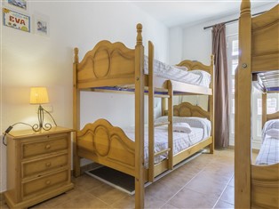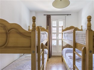 "Vista Hermosa: Principe", 3-Zimmer-Wohnung 69 m² im 1. Stock. Komfortabel eingerichtet: Wohn-/Esszimmer mit 1 Doppeldiwanbett, Sat-TV, Flachbildschirm, Video und E-Heizofen. Ausgang zur Terrasse. 1 Zimmer mit 2 x 2 Etagenbetten, Heizofen. 1 Zimmer mit 1 franz. Bett und Heizofen. Offene Küche (4 Kochplatten, Mikrowelle, Tiefkühler) mit Bar. Bad/Bidet/WC. Terrasse. Terrassenmöbel. Zur Verfügung: Waschmaschine. Parkplatz Nr. 40. VFT/CA/06380