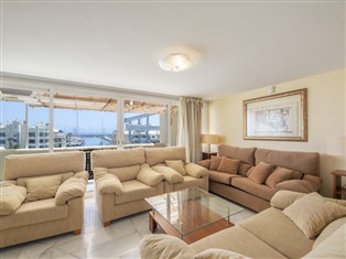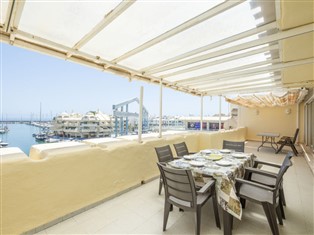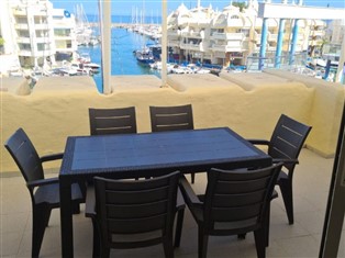 "Puerto Marina", 4-Zimmer-Wohnung 150 m² im 2. Stock. Objekt geeignet für 6 Erwachsene. Geräumig und hell, komfortabel und schön eingerichtet: grosses Wohn-/Esszimmer mit TV, Klimaanlage und Warmluftheizung. Ausgang zur Terrasse. 1 Doppelzimmer mit 1 franz. Bett (160 cm), Bad/WC, Klimaanlage und Warmluftheizung. 1 Kinderzimmer mit 2 Ausziehbetten (2 x 90 cm), Bad/WC. 1 Doppelzimmer mit 1 franz. Bett (150 cm). Grosse Küche (Backofen, Geschirrspüler, Mikrowelle, Tiefkühler). Bad/WC. Terrasse. Terrassenmöbel. Herrliche Sicht auf den Kanal und den Hafen. Zur Verfügung: Waschmaschine. CTC-2021369511