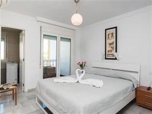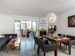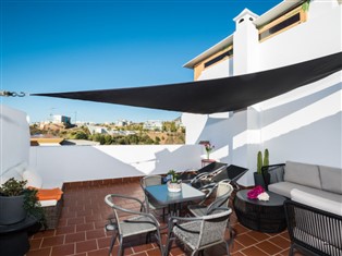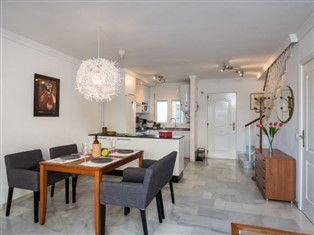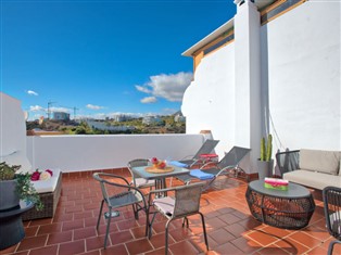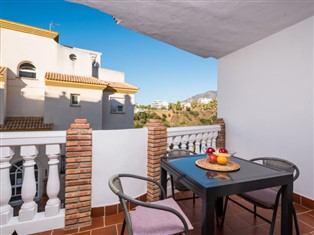 "Balcon de Benalmadena", 3-Zimmer-Reihenhaus 88 m² auf 3 Stockwerken. Objekt geeignet für 6 Erwachsene. Renoviert im Jahre 2014, komfortabel und schön eingerichtet: Wohn-/Esszimmer mit 1 Doppeldiwanbett, Kabel-TV, Digital-TV, Flachbildschirm, Klimaanlage und Warmluftheizung. Ausgang zum Balkon. Küche (Backofen, Geschirrspüler, Mikrowelle, Tiefkühler) mit Esstisch. Sep. WC. Obergeschoss: 1 Zimmer mit 2 Betten (90 cm). Ausgang zum Balkon. 1 Zimmer mit 1 franz. Bett (160 cm), Dusche/WC. Ausgang zum Balkon. Dusche/WC. Balkon, grosse Terrasse 30 m². Terrassenmöbel, Liegestühle. Seitliche Panoramasicht auf das Meer. Zur Verfügung: Waschmaschine, Bügeleisen, Babybett, Haartrockner. Internet (Wireless LAN). Geeignet für Familien. VFT/MA/08517
