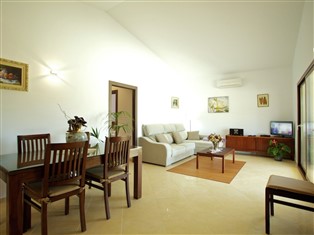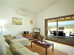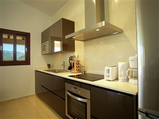 Ferienhaus, 120 m² Wohnfläche, 3 Schlafzimmer, 2 Badezimmer, für 6 Personen. Parterre: (Küche (Wasserkocher, Toaster, Kochherd (Ceranfeld), Kaffeemaschine, Backofen, Mikrowelle, Spülmaschine, Kühl-/Gefrierkombination), Wohn/Esszimmer (TV (Satellit), Esstisch, Sitzecke, Klimaanlage), Schlafzimmer (2x Einzelbett, Klimaanlage), Schlafzimmer (2x Einzelbett, Klimaanlage), Schlafzimmer mit Badezimmer (Doppelbett, Dusche, Waschbecken, Toilette, Klimaanlage), Badezimmer (Badewanne, Waschbecken, Toilette), Terrasse (alleinige Nutzung, überdacht), Gartenmöbel, Liegen)