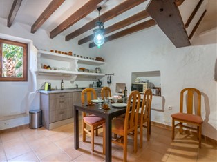 "Can Mora", 5-Zimmer-Haus 200 m² auf 2 Stockwerken. Objekt geeignet für 5 Erwachsene. Geräumig und hell, renoviert, sehr zweckmässig und schön eingerichtet: grosses Wohnzimmer mit Panoramafenster mit offenem Kamin, Sat-TV und Digital-TV. Ausgang zum Gartensitzplatz, zum Schwimmbad. 1 Zimmer mit 1 Bett (90 cm). Grosses Esszimmer mit Dachfenster mit Esstisch. Ausgang zum Gartensitzplatz. Wohnküche (Backofen, 3 Induktionskochplatten, Mikrowelle, Tiefkühler, elektrische Kaffeemaschine) mit Esstisch, offenem Kamin. Bad/Dusche/WC. Obergeschoss: 1 grosses Doppelzimmer mit Panoramafenster mit 2 Betten (90 cm), Klimaanlage und Warmluftheizung. 1 Doppelzimmer mit Panoramafenster mit 2 Betten (90 cm), Klimaanlage und Warmluftheizung. Bad/Dusche/WC. 3426