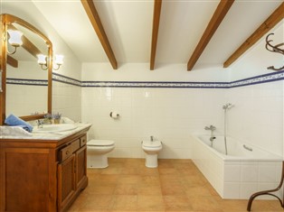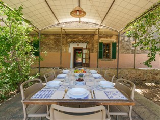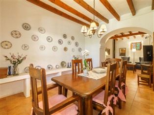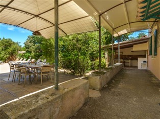 Establiments: Sehr grosses, sehr schönes, rustikales Herrenhaus "Cas Frare ESB100", auf 2 Stockwerken. Im Ort, 500 m vom Zentrum von Establiments, sonnige Lage, exzellente Lage: Absolut zentral und dennoch ruhig, 8 km vom Meer, 14 m vom Strand. Zur Alleinbenutzung: naturbelassenes Grundstück 3 000 m2 (eingezäunt), schöner Garten mit Pflanzen und Bäumen, Schwimmbad eckig (10 x 5 m, 100 - 200 cm tief, saisonale Verfügbarkeit: 01.Jan. - 31.Dez.) mit Salzelektrolyse-Reinigungssystem. Aussendusche, Sitzplatz, Laube, Pergola, Gartenmöbel, Grill. Im Hause: Internetzugang, Wireless LAN, Einstellraum für Fahrräder, Alarmanlage, Waschmaschine. Parkplatz auf dem Grundstück. Supermarkt 1.6 km, Restaurant, Bar, Biergarten 300 m, Bahnstation "Palma" 6 km, Sandstrand "Playa de Palma" 14 km. Sporthafen 7 km, Jacht-Hafen 7 km, Golfplatz (18 Loch) 6 km. Bitte beachten: geeignet für Familien, geeignet für Senioren. Objekt geeignet für 8 Erwachsene Jugendgruppen nur auf Anfrage. Der Besitzer akzeptiert keine Jugendgruppen. Be- und Entladen am Ferienhaus möglich. Flugplatz 15 km vom Haus.