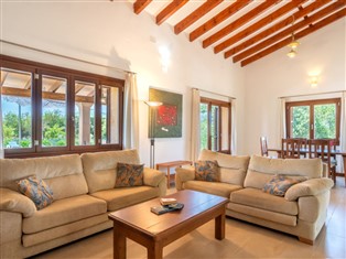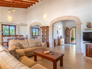 "Jardines", 4-Zimmer-Haus 150 m², Südlage. Geschmackvoll eingerichtet: Wohn-/Esszimmer mit offenem Kamin, Esstisch, Sat-TV, Radio, CD und DVD. Ausgang zur Terrasse. 1 Zimmer mit 1 franz. Bett (1 x 200 cm), Bad/WC. 2 Zimmer, jedes Zimmer mit 2 Betten. Offene Küche (Backofen, Geschirrspüler, 5 Flammen, Toaster, Wasserkocher, Mikrowelle, Tiefkühler, elektrische Kaffeemaschine). Dusche/WC, Bad/Dusche/WC. E-Heizung, Klimaanlage. Terrasse überdacht. Terrassenmöbel, Gartengrill, Liegestühle (6). Zur Verfügung: Waschmaschine, Bügeleisen, Kinderhochstuhl, Babybett, Haartrockner. Internet (Wireless LAN, gratis). Bitte beachten: Nichtraucher-Haus. Rauchmelder, Feuerlöscher. VT/1842