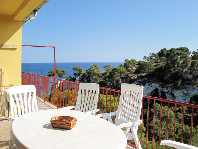 "Ses Sevines (LOM303)", 4-Zimmer-Haus 110 m² auf 2 Stockwerken. Zweckmässig eingerichtet: 1 Zimmer mit 2 Betten. Ausgang zur Terrasse. 1 Zimmer mit 1 franz. Bett (135 cm, Länge 190 cm). Ausgang zum Balkon. 1 Zimmer mit 1 franz. Bett (150 cm, Länge 190 cm), E-Heizofen. Ausgang zum Balkon. Dusche/WC. Obergeschoss: Wohn-/Esszimmer mit offenem Kamin, Esstisch, Sat-TV, DVD und E-Heizofen. Ausgang zum Balkon. Küche (Backofen, Geschirrspüler, 3 Glaskeramikherd Platten, Toaster, Wasserkocher, Mikrowelle, Tiefkühler, elektrische Kaffeemaschine). Dusche/WC. Balkon, 2 Terrassen. Balkonmöbel, Gartengrill (mobil), Liegestühle (3). Sicht auf das Meer. Zur Verfügung: Waschmaschine, Bügeleisen, Kinderhochstuhl, Babybett, Haartrockner. Bitte beachten: Nichtraucher-Haus. Feuerlöscher. ETV1786