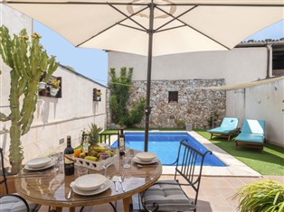 Haus "Pueblo", einseitig angebaut. Im Ort, 400 m vom Zentrum von Porreres, 9.5 km vom Zentrum von Campos, 20 km vom Zentrum von Manacor, 19 km vom Meer. Zur Alleinbenutzung: Grundstück 140 m2 (eingezäunt), Schwimmbad (5 x 3 m, saisonale Verfügbarkeit: 01.Jan. - 31.Dez.). Aussendusche, Terrasse.