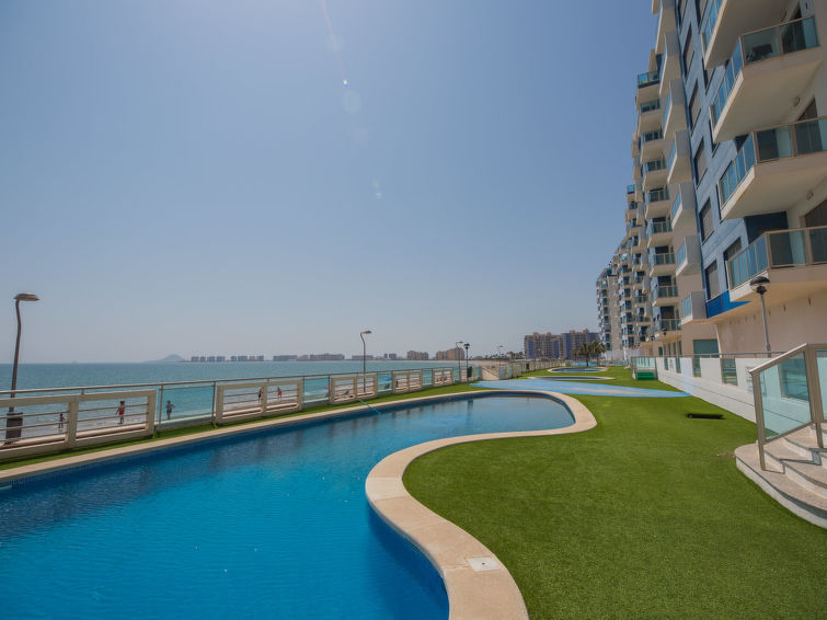 La Manga del Mar Menor: Appartementhaus "Euromarina Towers", Baujahr 2007. Am Ortsrand, 4.5 km vom Zentrum von La Manga, sonnige Lage, 50 m vom Meer. Zur Mitbenutzung: 2 Schwimmbäder (saisonale Verfügbarkeit: 01.Jan. - 31.Dez.). Kinderbecken, Aussendusche. Im Hause: Fahrstuhl. Öffentliches Parkhaus in 50 m. Lebensmittelgeschäft 200 m, Restaurant, Bushaltestelle, Sandstrand 100 m. Reitstall 20 km.