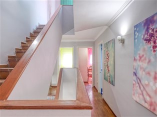 5-Zimmer-Reihenhaus 171 m² auf 3 Stockwerken. Zweckmässig eingerichtet: 1 Zimmer mit 1 franz. Bett (180 cm, Länge 200 cm). Ausgang zur Terrasse. Obergeschoss: Wohn-/Esszimmer mit Sat-TV. Grosse Küche (Backofen, Geschirrspüler, 3 Glaskeramikherd Platten, Toaster, Wasserkocher, Tiefkühler, elektrische Kaffeemaschine). 2. Obergeschoss: 1 Zimmer mit 1 franz. Bett (180 cm, Länge 200 cm), Dusche/WC und TV. 1 Zimmer mit 1 Bett (80 cm, Länge 190 cm). 1 Zimmer mit 1 Bett (90 cm, Länge 190 cm). Bad/WC. Keine Heizmöglichkeit. Grosse Terrasse. Terrassenmöbel. Zur Verfügung: Waschmaschine, Bügeleisen, Haartrockner. Internet (Wireless LAN, gratis). Garage (1 Auto), Höhe 225 cm, Breite 440 cm. Bitte beachten: Parkplatz nur für kleine Wagen. TV nur DE, FR, ES. WICHTIG: Zwischen den verschiedenen Stockwerken des Hauses gibt es eine Treppe mit 13 Stufen Dachterrasse befindet sich. HUTG-069816