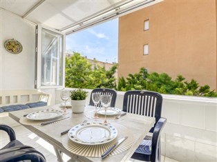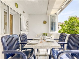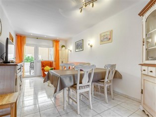 3-Zimmer-Wohnung 65 m², im Obergeschoss. Zweckmässig und komfortabel eingerichtet: Wohn-/Esszimmer mit Esstisch, Sat-TV, Klimaanlage und Warmluftheizung. Ausgang zur Terrasse, zur Loggia. 1 Zimmer mit 1 Bett (160 cm, Länge 190 cm), Dusche/WC. 1 Zimmer mit 2 Betten (90 cm, Länge 190 cm). Küche (4 Kochplatten, Backofen, Geschirrspüler, Toaster, Wasserkocher, Mikrowelle, Tiefkühler, elektrische Kaffeemaschine). Dusche/WC. Keine Heizmöglichkeit. 2 kleine Terrassen. Terrassenmöbel. Zur Verfügung: Waschmaschine, Bügeleisen, Haartrockner. Bitte beachten: Nichtraucher-Unterkunft. TV nur FR, ES. Kein Fahrstuhl. HUTG-072620