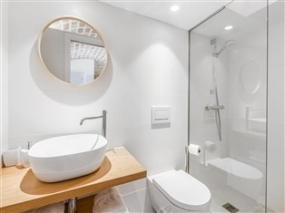 Infos für Menschen mit Einschränkungen: Garten/Terrasse Durchgang>= 80cm, Wohnzimmer - Durchgang >= 80cm, Schlafzimmer -Durchgang >= 80cm, Küche - Durchgang >= 80cm, Badezimmer Durchgang >= 80cm, Freiraum unterm Waschbecken >=70 cm, Rollstuhlkompatible Dusche, Toilette - Durchgang >=80cm