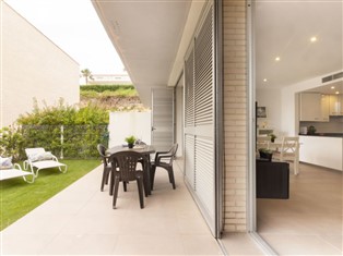 Estrella II: Sehr modernes, gemütliches, komfortables Reihenhaus "Estrella", auf 2 Stockwerken, Baujahr 2011. Im Villenviertel, 110 m vom Meer, 100 m vom Strand. Zur Mitbenutzung: Park (eingezäunt), grosser Garten (eingezäunt), Schwimmbad (20 x 8 m, saisonale Verfügbarkeit: 01.Jun. - 30.Okt.). Aussendusche, Sitzplatz. Zur Alleinbenutzung: kleiner, schöner Garten. Sitzplatz, Gartenmöbel. Im Hause: Internetzugang, Wireless LAN, Klimaanlage, Waschmaschine. Parkplatz (für 2 Autos, beschränkte Anzahl) beim Haus. Lebensmittelgeschäft 1.5 km, Restaurant 800 m. Sporthafen 2 km, Golfplatz (18 Loch) 5 km, Surfschule 20 km. Nahe gelegene Sehenswürdigkeiten: Port Aventura 60 km, Parque natural Delta del Ebro 20 km. Bitte beachten: Fahrzeug empfohlen.