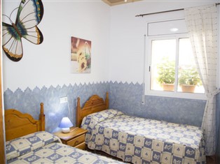 "Masia del Mosso", 7-Zimmer-Haus 130 m² auf 2 Stockwerken. Renoviert im Jahre 2022: Wohn-/Esszimmer 30 m² mit offenem Kamin, Sat-TV, Digital-TV und Flachbildschirm. 1 Zimmer mit 2 Betten (90 cm, Länge 190 cm), Ventilator. 1 Zimmer mit 1 franz. Bett (135 cm, Länge 190 cm), Ventilator. 1 Zimmer mit 1 Bett (90 cm, Länge 180 cm), Ventilator. Offene Küche (4 Kochplatten, Backofen, Mikrowelle, Tiefkühler, elektrische Kaffeemaschine) mit Ventilator. Sitzbad/Bidet/WC. Obergeschoss: Wohn-/Esszimmer mit Digital-TV. 1 Zimmer mit 1 franz. Bett (135 cm, Länge 190 cm), Ventilator. 1 Zimmer mit 2 Betten (90 cm, Länge 190 cm), Ventilator. Bad/Bidet/WC. Balkon. Liegestühle (5). Zur Verfügung: Waschmaschine, Bügeleisen, Fliegengitter. Internet (Wireless LAN, gratis). Parkplatz (eingezäunt, 2 Autos). Zugang zum Obergeschoss über metallene Aussentreppe (18 Treppenstufen). Ventilatoren. HUTTE-001036