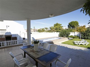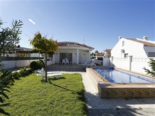 Riumar 8 km von Deltebre: Sehr modernes, schönes Haus "Sandra". Ruhige, sonnige Lage, 400 m vom Meer, 400 m vom Strand. Zur Alleinbenutzung: grosser, schöner Garten (eingezäunt), Schwimmbad eckig (saisonale Verfügbarkeit: 01.Jan. - 31.Dez.). Aussendusche, Gartenmöbel, Grill (Schaukel), Parkplatz (für 2 Autos) auf dem Grundstück. Einkaufsgeschäft, Restaurant, Bar 500 m. Jugendgruppen nur auf Anfrage.