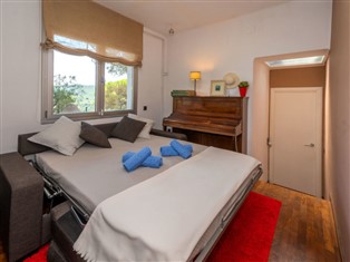 3-Zimmer-Haus 180 m². Geräumig und hell, geschmackvoll und gemütlich eingerichtet: grosses Wohn-/Esszimmer mit offenem Kamin und TV. Ausgang zur Terrasse. 1 Zimmer mit 1 Bett und 1 x 2 Etagenbetten. Durchgangszimmer offenes mit 1 Doppeldiwanbett. Küche (Backofen, Geschirrspüler, 4 Glaskeramikherd Platten, Mikrowelle, Tiefkühler, elektrische Kaffeemaschine) mit Esstisch. Dusche/WC. Heizung. Unteres Geschoss: 1 Zimmer mit 1 franz. Bett und Bad/WC. Terrassenmöbel, Gartengrill, Liegestühle (4), Loggia. Herrliche Sicht auf das Meer, die Berge und die Landschaft. Zur Verfügung: Waschmaschine, Bügeleisen, Haartrockner. Internet (Wireless LAN, gratis). Bitte beachten: geeignet für Familien. Nichtraucher-Haus. HUTB015874