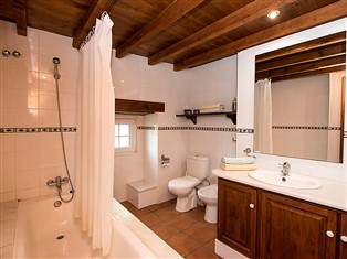 "Can Trullas", 5-Zimmer-Haus 200 m² auf 2 Stockwerken. Rustikal eingerichtet: Eingang 20 m² mit Digital-TV. Wohnzimmer mit TV. Ausgang zum Garten. 1 Zimmer mit 2 Betten (90 cm). Ausgang zum Garten. Wohnküche (4 Kochplatten, Backofen, Geschirrspüler, Mikrowelle, Tiefkühler, elektrische Kaffeemaschine). Bad/Bidet/WC. Keine Heizmöglichkeit. Obergeschoss: 1 Zimmer mit 1 Doppelbett (160 cm), Bad/Bidet/WC. 1 Zimmer mit 2 Betten (90 cm). 1 Zimmer mit 1 Doppelbett. Ausgang zur Terrasse. Bad/Bidet/WC. Grosse Terrasse 40 m², Gartensitzplatz 500 m². Terrassenmöbel, Liegestühle (6). Sicht auf die Berge und den Wald. Zur Verfügung: Waschmaschine. Internet (Wireless LAN, gratis). Maximal 1 Haustier/Hund erlaubt. HUTB005785