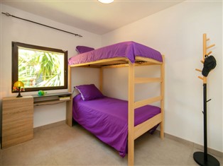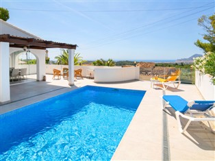 "Aitana", 4-Zimmer-Villa 104 m². Objekt geeignet für 4 Erwachsene + 2 Kinder. Geräumig und hell, komfortabel und modern eingerichtet: offenes Wohn-/Esszimmer mit Sat-TV, Klimaanlage und Warmluftheizung. Ausgang zur Terrasse, zum Schwimmbad. 1 Zimmer mit 1 franz. Bett (1 x 180 cm, Länge 200 cm), Klimaanlage und Warmluftheizung. 1 Zimmer mit 1 franz. Bett (1 x 180 cm, Länge 200 cm). 1 Zimmer mit 1 x 2 Etagenbetten (80 cm, Länge 190 cm). Offene Küche (Backofen, 4 Induktionskochplatten, Toaster, Wasserkocher, Mikrowelle, elektrische Kaffeemaschine). Dusche/WC. Terrasse. Terrassenmöbel, Gartengrill, Liegestühle. Fernsicht auf das Meer und die Ortschaft. Zur Verfügung: Waschmaschine, Bügeleisen, Kinderhochstuhl, Babybett bis 2 Jahre, Haartrockner. Internet (Wireless LAN, gratis). Parkplatz. Bitte beachten: geeignet für Familien. Nichtraucher-Haus. VT-485581-A