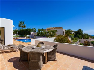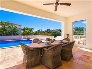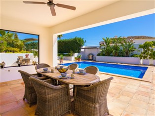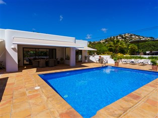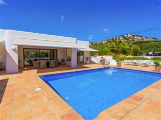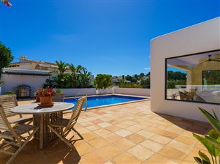 Benissa Costa: Moderne, schöne Villa "Anguila". 5 km vom Zentrum von Moraira, 10 km vom Zentrum von Calpe, ruhige, sonnige Lage im Villenviertel, verkehrsberuhigte Zone, 1.8 km vom Meer, 1.8 km vom Strand. Zur Alleinbenutzung: Grundstück 1 600 m2 (eingezäunt), schöner Garten, Schwimmbad eckig (8 x 5 m, saisonale Verfügbarkeit: 01.Jan. - 31.Dez.) mit Innentreppe. Aussendusche, Terrasse, Gartenmöbel, Grill. Lebensmittelgeschäft 2 km, Supermarkt 2 km, Sandstrand "Playa La Fustera" 5 km. Sporthafen 6 km, Jacht-Hafen 6 km, Golfplatz 3 km. Nahe gelegene Sehenswürdigkeiten: Aqualandia, Mundomar, Terra Mítica, Terra Natura, Les Fonts de l Algar, Castillo de Guadalest. Bitte beachten: Für Kleinkinder nicht geeignet. Der Besitzer akzeptiert keine Jugendgruppen.