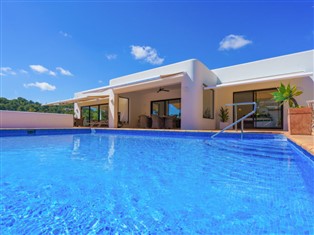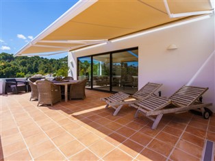 "Anguila", 3-Zimmer-Villa 105 m². Geräumig und hell, schön und modern eingerichtet: offenes grosses Wohn-/Esszimmer mit Sat-TV, Digital-TV, Klimaanlage und Warmluftheizung. Ausgang zur Terrasse, zum Schwimmbad. 1 Zimmer mit 1 franz. Bett (1 x 200 cm, Länge 200 cm), Dusche/WC, TV, Klimaanlage, Ventilator und Warmluftheizung. 1 Zimmer mit 1 franz. Bett (1 x 160 cm, Länge 200 cm), Bad/Dusche/WC, Doppelwaschbecken, TV, Klimaanlage, Ventilator und Warmluftheizung. Ausgang zur Terrasse. Offene Küche (Backofen, Geschirrspüler, 3 Induktionskochplatten, Toaster, Wasserkocher, Mikrowelle, elektrische Kaffeemaschine). Grosse Terrasse, grosser Garten. Terrassenmöbel, Gartengrill, Liegestühle, Sitzplatz. Fernsicht auf das Meer, das Tal und die Ortschaft. Zur Verfügung: Waschmaschine, Bügeleisen, Kinderhochstuhl, Babybett bis 2 Jahre, Haartrockner. Internet (Wireless LAN, gratis). Parkplatz (2 Autos). Bitte beachten: geeignet für Familien, für Kleinkinder nicht geeignet. Nichtraucher-Haus. AT-501971-A