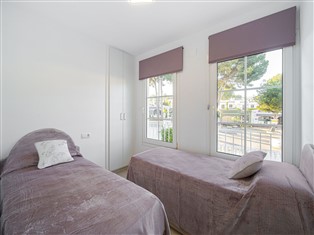 Ferienhaus, 75 m² Wohnfläche, 2 Schlafzimmer, 2 Badezimmer, für 4 Personen. Parterre: (Eingang (von außen erreichbar), Küche (Kochplatte, Dunstabzugshaube, Kaffeemaschine (Filter), Backofen, Mikrowelle, Spülmaschine, Kühl-/Gefrierkombination), Wohn/Esszimmer (TV (Flatscreen), Esstisch (4 Personen), Sitzecke), Schlafzimmer (Doppelbett (150 x 190 cm)), Schlafzimmer (Einzelbett (90 x 190 cm), Einzelbett (90 x 190 cm)), Badezimmer (Dusche, Waschbecken, Toilette), Badezimmer (Dusche, Waschbecken, Toilette), Heizung (Heißluftheizung), Klimaanlage (mobile), Terrasse (alleinige Nutzung))