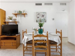 "Las Calitas Bloque III", 3-Zimmer-Wohnung 60 m² im 1. Stock. Einfach eingerichtet: Wohn-/Esszimmer mit 1 Doppeldiwanbett (130 cm, Länge 190 cm), Esstisch, Digital-TV, Flachbildschirm, Radio, Klimaanlage und Warmluftheizung. Ausgang zur Loggia. 1 Zimmer 12 m² mit 1 Doppelbett (135 cm, Länge 190 cm), Bad/Bidet/WC, Klimaanlage und Warmluftheizung. 1 Zimmer 12 m² mit 2 Betten (80 cm, Länge 190 cm), Klimaanlage und Warmluftheizung. Kleine, offene Küche 5 m² (Backofen, 4 Glaskeramikherd Platten). Dusche/Bidet/WC. Boiler (50 Liter). Balkon 9 m². Terrassenmöbel. Eingeschränkte Sicht auf den Garten. Zur Verfügung: Waschmaschine, Bügeleisen. Internet (Wireless LAN). Garage Nr. 29. Bitte beachten: geeignet für Familien. Parkplatz nur für kleine Wagen. Maximal 1 kleines Haustier/Hund erlaubt. TV nur ES. AT-441626-A