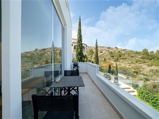 Die Wohnung grenzt an ein Naturschutzgebiet, sodass die private Terrasse einen Blick auf die Umgebung und in der Ferne das Meer bietet. Ein Raum beherbergt die Küche und den Schlafbereich und separat das Badezimmer. Außerdem gibt es eine großzügige Dachterrasse und einen Garten mit eigenem Swimmingpool.