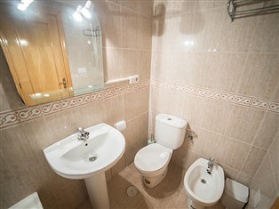 "Edificio San Luis II", 3-Zimmer-Wohnung 60 m². Hell, einfach und komfortabel eingerichtet: Wohn-/Esszimmer 20 m² mit Esstisch, Digital-TV, Flachbildschirm, Stereoanlage, DVD, Klimaanlage, Ventilator und Warmluftheizung. Ausgang zur Terrasse. 1 Zimmer mit 1 franz. Bett (135 cm, Länge 190 cm). 1 Zimmer mit 2 Betten (80 cm, Länge 190 cm). Offene Küche 10 m² (4 Kochplatten, Backofen, Mikrowelle, elektrische Kaffeemaschine) mit Bar, Boiler (50 Liter). Bad/Bidet/WC. Kleine Terrasse 10 m². Terrassenmöbel. Zur Verfügung: Waschmaschine. Garage Nr. 1º PLANTA Nº 4. Bitte beachten: geeignet für Familien. Parkplatz nur für kleine Wagen. Maximal 1 kleines Haustier/Hund erlaubt. TV nur ES. AT-441612-A