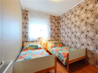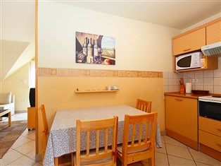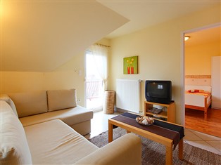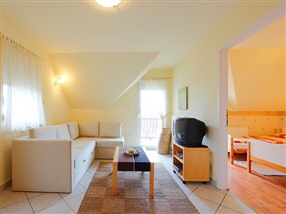 6-Zimmer-Doppelhaushälfte 102 m². Teilweise abgeschrägt, modern und gemütlich eingerichtet: Wohn-/Schlafzimmer mit 1 Doppeldiwanbett und Kabel-TV. Ausgang zur Terrasse. 1 Zimmer mit 2 Betten. 1 Zimmer mit 1 franz. Bett (180 cm, Länge 200 cm). Offene Küche (2 Kochplatten, Kombinationsmikrowelle) mit Esstisch. Dusche/WC. Obergeschoss: (Aussentreppe) Wohn-/Schlafzimmer mit 1 Doppeldiwanbett und Kabel-TV. Ausgang zum Balkon. 1 Zimmer mit 2 Betten. Ausgang zum Balkon. 1 Zimmer mit 1 franz. Bett (160 cm, Länge 200 cm). Offene Küche (2 Kochplatten, Mikrowelle) mit Esstisch. Dusche/WC. 2 Balkone, Terrasse 12 m². Terrassenmöbel, Balkonmöbel. Schöne Sicht auf den See. Zur Verfügung: Haartrockner. Internet (Wireless LAN, extra). Parkplatz (eingezäunt, 3 Autos). 1 Haustier/Hund erlaubt. MA20001178